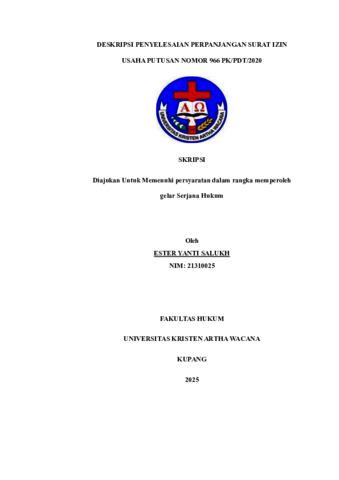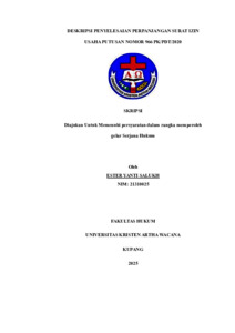 SALUKH, Ester Yanti (2025) DESKRIPSI PENYELESAIAN PERPANJANGAN SURAT IZIN USAHA PUTUSAN NOMOR 966 PK/PDT/2020. Undergraduate thesis, Artha Wacana Christian University.