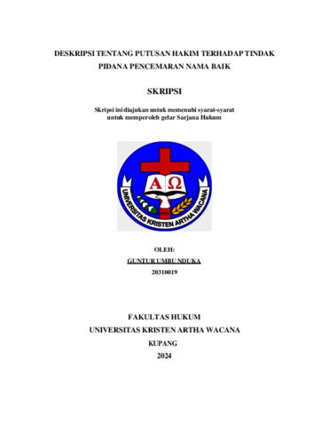 NDUKA, Guntur Umbu (2024) DESKRIPSI TENTANG PUTUSAN HAKIM TERHADAP TINDAK PIDANA PENCEMARAN NAMA BAIK. Undergraduate thesis, Artha Wacana Christian University.