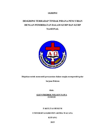 NAWA, Glen Fredrik Wilson (2025) DESKRIPSI TERHADAP TINDAK PIDANA PENCURIAN DENGAN PEMBERATAN DALAM KUHP DAN KUHP NASIONAL. Undergraduate thesis, Artha Wacana Christian University.