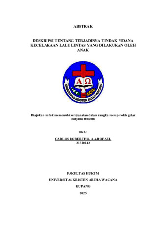 ROFAEL, Carlos Robertho A. A. (2025) DISKRIPSI TENTANG TERJADINYA TINDAK PIDANA KECELAKAAN LALU LINTAS YANG DI LAKUKAN OLEH ANAK. Undergraduate thesis, Artha Wacana Christian University.