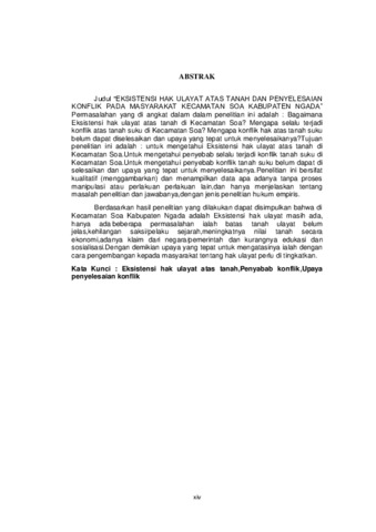 Permasalahan yang di angkat dalam dalam penelitian ini adalah: Bagaimana Eksistensi hak ulayat atas tanah di Kecamatan Soa? Mengapa selalu terjadi konflik atas tanah suku di Kecamatan Soa? Mengapa konflik hak atas tanah suku belum dapat diselesaikan dan upaya yang tepat untuk menyelesaikanya?Tujuan penelitian ini adalah: untuk mengetahui Eksistensi hak ulayat atas tanah di Kecamatan Soa.Untuk mengetahui penyebab selalu terjadi konflik tanah suku di Kecamatan Soa. Untuk mengetahui penyebab konflik tanah suku belum dapat di selesaikan dan upaya yang tepat untuk menyelesaikanya. Penelitian ini bersifat kualitatif (menggambarkan) dan menampilkan data apa adanya tanpa proses manipulasi atau perlakuan perlakuan lain, dan hanya menjelaskan tentang masalah penelitian dan jawabanya,dengan jenis penelitian hukum empiris. Berdasarkan hasil penelitian yang dilakukan dapat disimpulkan bahwa di Kecamatan Soa Kabupaten Ngada adalah Eksistensi hak ulayat masih ada, hanya ada beberapa permasalahan ialah batas tanah ulayat belum jelas, kehilangan saksi/pelaku sejarah,meningkatnya nilai tanah secara ekonomi, adanya klaim dari negara/pemerintah dan kurangnya edukasi dan sosialisasi. Dengan demikian upaya yang tepat untuk mengatasinya ialah dengan cara pengembangan kepada masyarakat tentang hak ulayat perlu di tingkatkan.