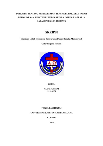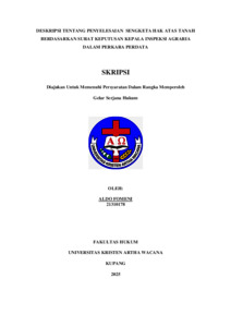 FOMENI, Aldo (2025) DESKRIPSI TENTANG PENYELESAIAN SENGKETA HAK ATAS TANAH BERDASARKAN SURAT KEPUTUSAN KEPALA INSPEKSI AGRARIA DALAM PERKARA PERDATA. Undergraduate thesis, Artha Wacana Christian University.