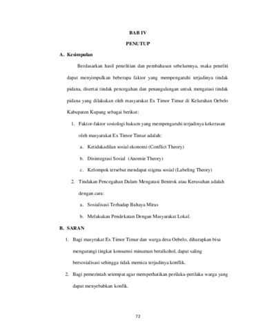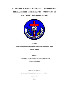 WENI, Godbless J. Fernandes (2025) KAJIAN SOSIOLOGI HUKUM TERJADINYA TINDAK PIDANA KEKERASAN OLEH MASYARAKAT EX – TIMOR TIMUR DI DESA OEBELO KABUPATEN KUPANG. Undergraduate thesis, Artha Wacana Christian University.