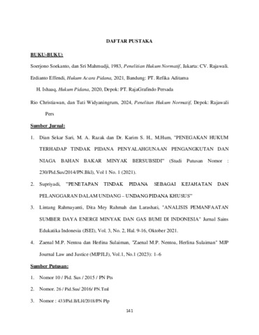 LUASE, Nehemia David (2025) DESKRIPSI TENTANG PENEGAKAN HUKUM TERHADAP TINDAK PIDANA PENGANGKUTAN BAHAN BAKAR MINYAK TANPA IZIN USAHA. Undergraduate thesis, Artha Wacana Christian University.