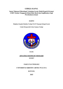 MESSAKH, Jonathan Rudolof (2025) GEREJA KAPAL: Suatu Tinjauan Eklesiologis Terhadap Gereja Model Kapal di Jemaat GMIT Syalom Tunggaoen Klasis Rote Barat dan Implikasinya bagi Persekutuan Jemaat. Undergraduate thesis, Artha Wacana Christian University.