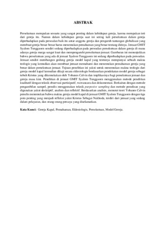 | Uncontrolled Keywords: | Gereja Kapal, Pemahaman, Eklesiologis, Persekutuan, Model Gereja. |