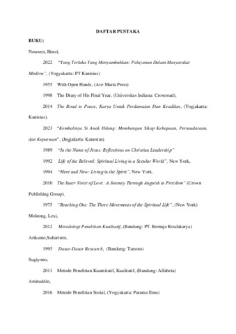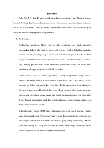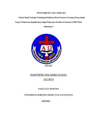 RADJA, Marthino Sesariko (2025) PENYEMBUH YANG TERLUKA: Suatu Studi Teologis Terhadap Pemikiran Henri Nouwen Tentang Penyembuh Yang Terluka dan Implikasinya Bagi Pelayanan Pendeta di Jemaat GMIT Pniel Sikumana. Undergraduate thesis, Artha Wacana Christian University.