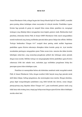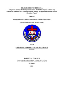 RAWIS, Gracella Yohana Nadya J. (2025) PRAKSIS KRISTEN BERSAMA: Tinjauan Teologis Terhadap Pelaksanaan Pendidikan Agama Kristen bagi Pemuda di Jemaat GMIT Ebenhaezer Oeba dengan Menggunakan Metode Shared Christian Praxis. Undergraduate thesis, Artha Wacana Christian University.