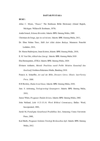 | Uncontrolled Keywords: | Tarian, Ibadah, Liturgi, Alkitab, Penyambahan |