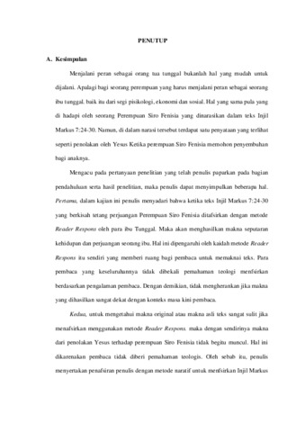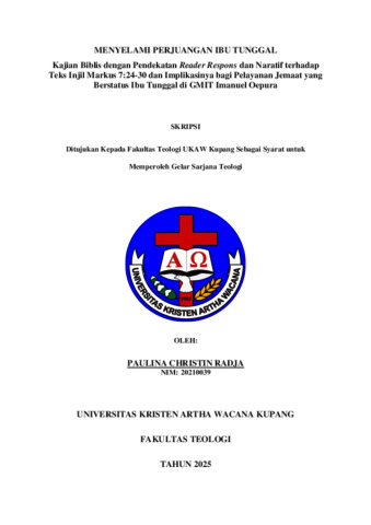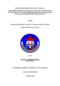 RADJA, Paulina Christin (2025) MENYELAMI PERJUANGAN IBU TUNGGAL: Kajian Biblis dengan Pendekatan Reader Responsdan Naratif terhadap Teks Injil Markus 7:24-30 dan Implikasinya bagi Pelayanan Jemaat yang Berstatus Ibu Tunggal di GMIT Imanuel Oepura. Undergraduate thesis, Artha Wacana Christian University.