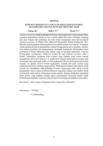 TOLANG, Hermundus (2025) JENIS DAN KERAPATAN LAMUN (Seagrass) DI PANTAI DESA MUNASELI KECAMATAN PANTAR KABUPATEN ALOR. Undergraduate thesis, Artha Wacana Christian University.