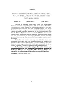 FAKTOR-FAKTOR YANG MEMPENGARUHI KREATIVITAS SISWA PADA JAM PEMBELAJARAN DI SMA SWASTA KRISTEN TARUS TAHUN AJARAN 2023/2024