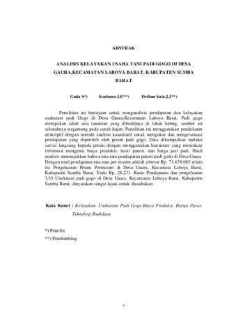 ANALISIS KELAYAKAN USAHATANI PADI GOGO DIDESA GAURA KECAMATAN LABOYA BARAT KABUPATEN SUMBA BARAT