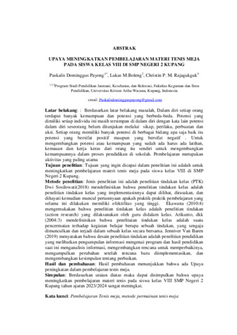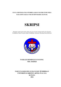 PAYONG, Paskalis Dominggus (2023) UPAYA MENINGKATKAN PEMBELAJARAN MATERI TENIS MEJA PADA SISWA KELAS VIII DI SMP NEGERI 2 KUPANG. Undergraduate thesis, Artha Wacana Christian University.