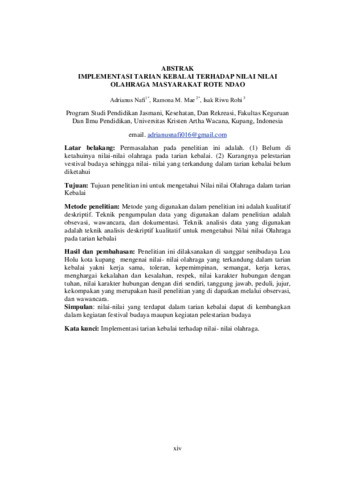 NAFI, Adrianus (2024) IMPLEMENTASI TARIAN KEBALAI TERHADAP NILAI NILAI OLAHRAGA MASYARAKAT ROTE NDAO. Undergraduate thesis, Artha Wacana Christian University.