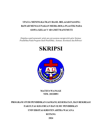 WANGGE, Mateus (2024) UPAYA MENINGKATKAN HASIL BELAJAR PASSING BAWAH MENGGUNAKAN MEDIA BOLA PLASTIK PADA SISWA KELAS V SD GMIT MANUMUTI. Undergraduate thesis, Artha Wacana Christian University.