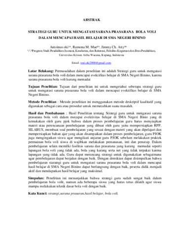 STRATEGI GURU UNTUK MENGATASI SARANA PRASARANA BOLA VOLI DALAM MENCAPAI EVEKTIVITAS BELAJAR DI SMA NEGERI BININO