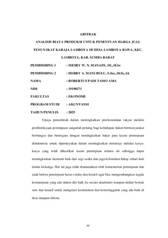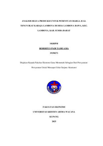 TAMO AMA, Robertus Padi (2025) ANALISIS BIAYA PRODUKSI UNTUK PENENTUAN HARGA JUAL TENUN IKAT KARAJA LAMBOYA DI DESA LAMBOYA BAWA, KEC. LAMBOYA, KAB. SUMBA BARAT. Undergraduate thesis, Artha Wacana Christian University.