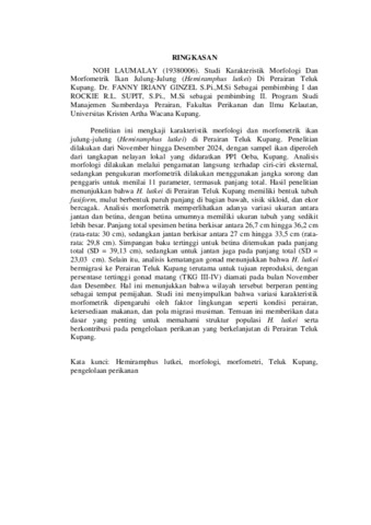 LAUMALAY, Noh (2025) STUDI KARAKTERISTIK MORFOLOGI DAN MORFOMETRIK IKAN JULUNG-JULUNG (Hemiramphus lutkei) DI PERAIRAN TELUK KUPANG. Undergraduate thesis, Artha Wacana Christian University.