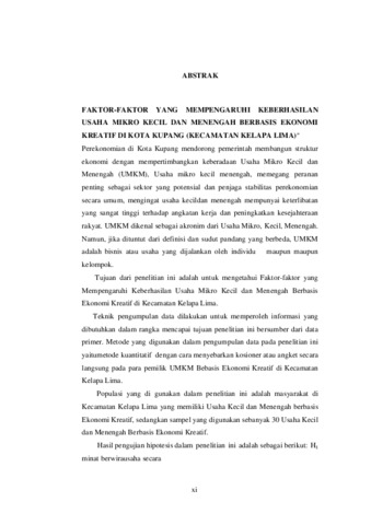 FAKTOR-FAKTOR YANG MEMPENGARUHI KEBERHASILAN USAHA MIKRO KECIL DAN MENENGAH BERBASIS EKONOMI KREATIF DI KOTA KUPANG (KECAMATAN KELAPA LIMA)