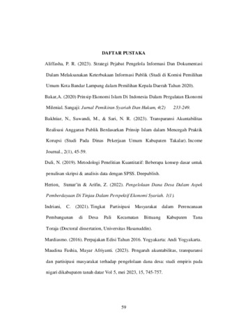 LEDOH, Elsa Sintia (2025) PENGARUH AKUNTABILITAS, TRANSPARANSI DAN PARTISIPASI MASYARAKAT TERHADAP PENGELOLAAN DANA DESA DI KECAMATAN AMFOANG UTARA. Undergraduate thesis, Artha Wacana Christian University.