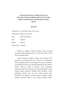 MANHAU, Marini Sofia (2024) ANALISIS KESESUAIAN LAPORAN KEUANGAN ORGANISASI NONLABA BERDASARKAN ISAK 35 PADA GEREJA MASEHI INJILI DI TIMOR JEMAAT BETEL OEFAFI. Undergraduate thesis, Artha Wacana Christian University.