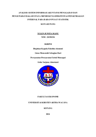 MANU, Yulen Juwita (2024) ANALISIS SISTEM INFORMASI AKUNTANSI PENGGAJIAN DAN PENGUPAHAN DALAM UPAYA MENDUKUNG EFEKTIVITAS PENGENDALIAN INTERNAL PADA BADAN PUSAT STATISTIK KOTA KUPANG. Undergraduate thesis, Artha Wacana Christian University.