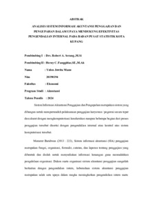 Sistem Informasi Akuntansi Penggajian dan Pengupahan merupakan sistem yang dibangun untuk mempermudah pelaksanaan penggajian karyawan/pegawai secara tepat dan akurat dengan mengkomputerisasi keseluruhan maupun beberapa bagian dari proses penggajian tersebut disertai dengan pengendalian internal atau kontrol atas sistem komputerisasi tersebut. Menurut Baridwan (2013: 223), Sistem informasi akuntansi (SIA) penggajian merupakan fungsi, organisasi, formulir, catatan, dan laporan tentang penggajian yang dibentuk dan diolah untuk menyediakan informasi keuangan guna memudahkan pengelolaan organisasi. Dalam suatu organisasi sistem akuntansi penggajian sangatlah berkaitan dengan pengendalian intern, keberadaan sistem akuntansi penggajian merupakan salah satu upaya dalam rangka meningkatkan pengendalian intern suatu organisasi. Apabila sistem akuntansi yang di miliki oleh organisasi berjalan baik, maka pengendalian intern organisasi dapat dilaksanakan dengan baik pula. Sistem pengendalian intern merupakan proses pemantauan yang memungkinkan manajemen mengetahui apakah tindakan yang dilakukan dan bagaimanakah tindakan koreksinya jika pelaksanaan tidak sesuai dengan yang telah ditetapkan semula. Suatu sistem pengendalian intern dikatakan memadai jika dengan diterapkannya sistem tersebut semua tujuan organisasi dapat tercapai. Tujuan tersebut adalah pengamanan atau menjaga aktiva yang dimiliki, memeriksa ketelitian dan kebenaran data akuntansi, menjamin adanya efisiensi dalam operasional serta menjaga agar tidak terjadi penyimpangan dari kebijakan yang telah ditetapkan, dengan demikian dapat dilihat bahwa sistem pengendalian intern mempunyai peranan yang penting sekali bagi suatu organisasi. Pada Badan Pusat Statistik Kota Kupang sistem penggajian sudah terkomputerisasi, hal ini bertujuan untuk menghindari timbulnya kecurangan maupun kesalahan dalam pencatatan, perhitungan dan pembayaran gaji. Tujuan dari penelitian ini untuk mengetahui sistem informasi akuntansi untuk proses penggajian dan pengupahan yang telah diterapkan di Badan Pusat Statistik Kota Kupang dan untuk mengetahui sistem informasi akuntansi yang di terapkan oleh perusahaan tersebut telah memiliki pengendalian intern yang memadai. Populasi dalam penelitian ini yaitu seluruh pegawai yang bekerja di Badan Pusat Statistik Kota Kupang. Jumlah sampel dalam penelitian ini berjumlah 2 orang yang terdiri dari bagian Kepegawaian, bagian Keuangan. Adapun dalam penelitian ini teknik pengumpulan data yang digunakan penulis yaitu wawancara dan dokumentasi sehingga sumber penelitian diperoleh secara langsung dari sumber asli. Hasil Penelitian ini adalah pengendalian internal pada sistem informasi akuntansi penggajian di Badan Pusat Statistik Kota Kupang sudah efektif sesuai dengan UU/PMK/ Peraturan yang berlaku dan juga sesuai dengan teori yang ada. Indikator Sistem informasi akuntansi penggajian yang digunakan seperti fungsi, dokumen penggajian, prosedur pengggajian yang sudah sesuai dengan praktik dan teori. Unsur komponen COSO seluruhnya terpenuhi sehingga dapat terwujud efektivitas pengendalian internal.