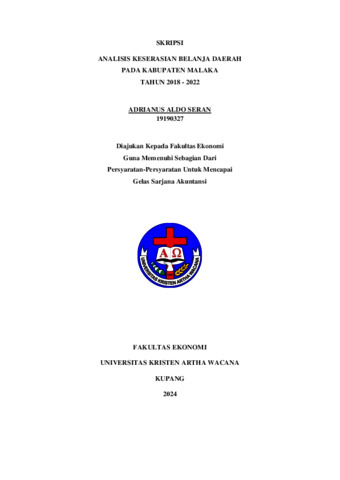 SERAN, Adrianus Aldo (2024) ANALISIS KESERASIAN BELANJA DAERAH PADA KABUPATEN MALAKA TAHUN 2018 - 2022. Undergraduate thesis, Artha Wacana Christian University.