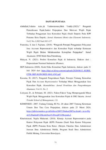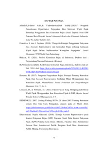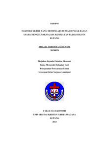SINAWENI, Mallia Trisonya (2024) FAKTOR-FAKTOR YANG MEMENGARUHI WAJIB PAJAK BADAN USAHA MENGGUNAKAN JASA KONSULTAN PAJAK DI KOTA KUPANG. Undergraduate thesis, Artha Wacana Christian University.