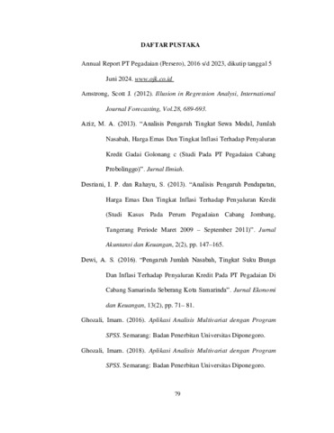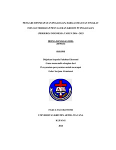 LOMA, Desna Dangga (2024) PENGARUH PENDAPATAN PEGADAIAN, HARGA EMAS DAN TINGKAT INFLASI TERHADAP PENYALURAN KREDIT PT PEGADAIAN (PERSERO) INDONESIA TAHUN 2016 - 2023. Undergraduate thesis, Artha Wacana Christian University.