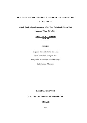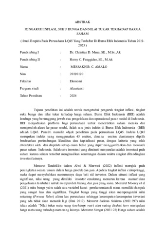 AMALO, Messakh B. C. (2024) PENGARUH INFLASI, SUKU BUNGA DAN NILAI TUKAR TERHADAP HARGA SAHAM: (Studi Empiris Pada Perusahaan LQ45 Yang Terdaftar Di Bursa Efek Indonesia Tahun 2019-2023). Undergraduate thesis, Artha Wacana Christian University.