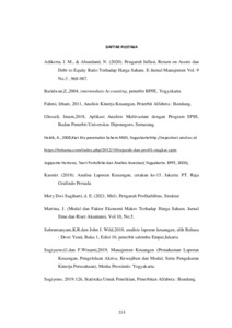 Penelitian ini berjudul masalah Analisis faktor-faktor yang mempengaruhi harga saham perusahaan LQ45 Di Bursa Efek Indonesia.masalah penelitian ini adalah analisis faktor-faktor yang mempengaruhi harga saham. Tujuan penelitian ini adalah 1) Untuk mengetahui pengaruh Net Profit Margin terhadap harga saham pada perusahaan LQ45 yang tercatat di bursa efek Indonesia 2) Untuk mengetahui pengaruh Debt to Equity Ratio terhadap harga saham pada perusahaan LQ45 yang tercatat di bursa efek Indonesia 3) Untuk mengetahui pengaruh Return on Equity terhadap harga saham pada perusahaan LQ45 yang tercatat di bursa efek Indonesia 4) Untuk mengetahui pengaruh Deviden per share terhadap harga saham pada perusahaan LQ45 yang tercatat di bursa efek Indonesia. Selain itu Manfaat dari Penelitian yang di dapat dari penelitian ini adalah manfaat teoritis dan manfaat praktis. Manfaat Teoritis diharapkan dapat menambah dan memberikan sumbangan teoritis sebagai bahan refresi serta temuan-temuan tentang pengaruh Net Profit Margin, Debt To Equity Ratio,Return On Equity, Deviden Per Share terhadapa Harga Saham Metode penelitian ini adalah Dokumentasi, dalam penelitian ini adalah perusahaan yang masuk dalam daftar LQ45 di Bursa Efek Indonesia (BEI) tahun 2022-2023. berdasarkan kriteria yang telah di tentukan maka diperoleh sampel sebanyak 45 perusahaan. Teknik Analisis Data yang digunakan kuantitatif. hasil penelitian ini menunjukkan bahwa: 1) Hasil Uji Koefisien Determinasi nilai R2 sebesar 0,075 menunjukkan bahwa variansi data variabel independent (deviden per share, deviden equity ratio,net profit margin,dan Return on equity) dapat menjelaskan variansi data variabel dependen (harga saham) sebesar 75%, sedangkan sisanya 25% dijelaskan oleh variabel lain yang tidak ikut dalam analisis. 2) Uji Regresi Linear Berganda hasil uji regresi linera berganda Nilai Konstanta a = 7804,263 artinya jika tidak ada perubahan dalam variabel independent (NPM, DER, ROE, DPS), maka harga saham akan sebesar 7804,263. Nilai Koefisien Net profit margin (X1) sebesar (-29,651) dengan arah negatif sebesar (-29,651) yang berarti jika net profit margin mengalami penurunan 1 satuan sementara variabel lain tidak berubah, maka harga saham akan menurun sebesar (-29.651) satuan. Nilai Koefisien Debt To Equity Ratio(X2) sebesar 34.866 dengan arah positif sebesar 34.866 yang berarti jika net profit margin mengalami peningkatan 1 satuan sementara variabel lain tidak berubah, maka harga saham akan meningkat sebesar 34.866 satuan. Nilai Koefisien return on equity (X3) sebesar(-61.290) dengan arah negatif sebesar (-61.290) yang berarti jika return on equity mengalami penurunan 1 satuan sementara variabel lain tidak berubah, maka harga saham akan menurun sebesar (-61.290)satuan. Nilai Koefisien Deviden per share (X4) sebesar 2.347 dengan arah positif sebesar 2.347 yang berarti jika deviden per share mengalami peningkatan 1 satuan sementara variabel lain tidak berubah, maka harga saham akan meningkat sebesar2.347 satuan. 3) Berdasrkan pembahasan hasil analisis tentang masalah dan persoalan penelitian data-data yang telah dilakukan maka dapat ditarik kesimpulan sebagai berikut: 1) net profit margin berpengaruh negatif terhadap harga saham pada peusahaan LQ45 yang terdaftar dlm BEI. Apabila semakin rendah net profit margin maka semakin rendah harga saham. 2) Debt to Equity Ratio berpengaruh positif terhadap harga saham pada peusahaan LQ45 yang terdaftar dalam BEI. Apabila semakin tinggi Debt to Equity Ratio maka semakin tinggi harga saham.3) Return on Equity berpengaruh negatif terhadap harga saham pada peusahaan LQ45 yang terdaftar dalam BEI. Apabila semakin rendahReturn on Equity maka semakin rendah harga saham 4) Deviden per share berpengaruh positif terhadap harga saham pada peusahaan LQ45 yang terdaftar dalam BEI. Apabila semakin tinggi deviden per share maka semakin tinggi harga saham. Berdasarkan hasil hipotesis Variabel Net profit margin memiliki sig 0,356 yang lebih besar dari nilai standar α 0,05 (0, 356 ˃ 0,05), serta t-hitung ˂ t-tabel (-0,929˂2,262)maka hipotesis hal terdukung, dengan demikian dapat disimpulkan bahwa variabel net profit margin secara persial berpengaruh negatif tidak signifikan terhadap harga saham. Variabel Debt To Equity Ratio memiliki sig 0,160 yang lebih besar dari nilai standar α 0,05 (0,160 ˃ 0,05), serta t-hitung ˂ t-tabel (1.416˂2,262)maka hipotesis hal terdukung, dengan demikian dapat disimpulkan bahwa variabel debt to equity ratio secara persial berpengaruh positif tidak signifikan terhadap harga saham. Variabel Return Equity Ratio memiliki sig 0,037 yang lebih besar dari nilai standar α 0,05 ( 0,037˃ 0,05), serta t-hitung ˂ t-tabel (-2,124˂2,262) maka hipotesis hal terdukung, dengan demikian dapat disimpulkan bahwa variabel return equity ratio secara persial berpengaruh negatif tidak signifikan terhadap harga saham. Variabel deviden per share memiliki sig 0,930 yang lebih besar dari nilai standar α 0,05 ( 0,930˃ 0,05), serta t-hitung ˂ t-tabel (0,088 ˂2,262)maka hipotesis hal terdukung, dengan demikian dapat disimpulkan bahwa variabel deviden per share secara persial berpengaruh positif tidak signifikan terhadap harga saham. sesuai dengan hasil penelitian ini peneliti ingin memberikan beberapa saran untuk dijadikan pertimbangan sebagai berikut: disarankan perusahaan untuk melakukan hal-hal yang dapat meningkatkan Net Profit Margin yang rendah menunjukkan bahwa perusahaan semakin tidak efisien dalam mengelola biaya dan menghasilkan laba bersih yang rendah dan pendapatan harga saham jadi disini perusahaan disarankan untuk melakukan hal-hal yang dapat meningkatkan investasi perusahaan, seperti menarik investor untuk berinvestasi. Disarankan bagi Investor laba merupakan salah satu tolak ukur yang biasanya kita lihat pada perusahaan, apakah sukses atau tidaknya suatu perusahaan cenderung dilihat dari bagaimna laba perusahaan tersebut. para investor harus teliti dalam melihat hal ini,termasuk faktor apa saja 