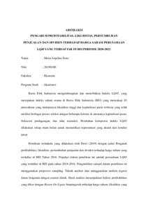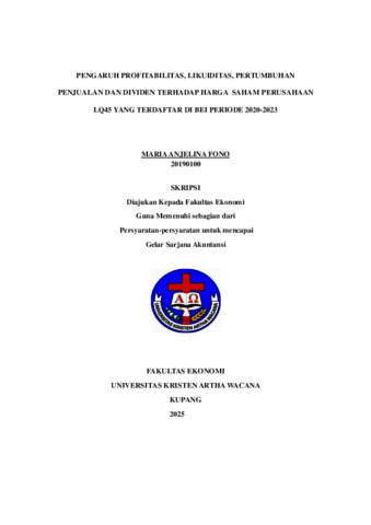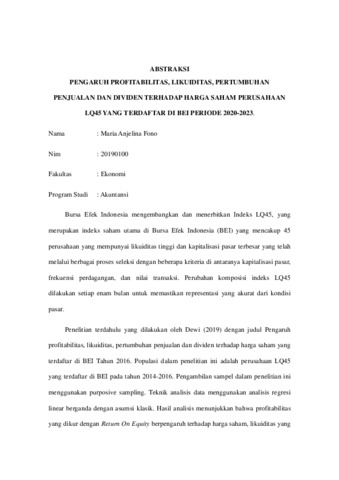 FONO, Maria Anjelina (2025) PENGARUH PROFITABILITAS, LIKUIDITAS, PERTUMBUHAN PENJUALAN DAN DIVIDEN TERHADAP HARGA SAHAM PERUSAHAAN LQ45 YANG TERDAFTAR DI BEI PERIODE 2020-2023. Undergraduate thesis, Artha Wacana Christian University.
