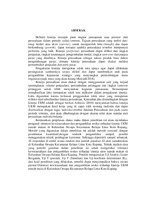 Definisi kinerja merujuk pada tingkat pencapaian atau prestasi dari perusahaan dalam periode waktu tertentu. Tujuan perusahaan yang terdiri dari: tetap berdiri atau eksis (survive), untuk memperoleh laba (benefit) dan dapat berkembang (growth), dapat tercapai apabila perusahaan tersebut mempunyai performa yang baik. Kinerja (performa) perusahaan dapat dilihat dari tingkat penjualan, tingkat keuntungan, pengembalian modal, tingkat turn over dan pangsa pasar yang diraihnya. Kinerja perusahaan sebagai sukses produk baru dalam pengembangan pasar, dimana kinerja perusahaan dapat diukur melalui pertumbuhan penjualan dan porsi pasar. Pengukuran kinerja merupakan salah satu upaya agar dapat dilakukan peningkatan sumberdaya secara efektif dan dapat memberikan arah pada pengambilan keputusan strategis yang menyangkut perkembangan suatu organisasi pada masa yang akan datang Mulyadi (2016). Kinerja perusahaan akan diukur dengan menggunakan unit yang terjual (peningkatan volume penjualan), pertumbuhan pelanggan dan tingkat turnover pelanggan untuk lebih menyatakan kegiatan pemasaran. Kemampuan menghasilkan laba merupakan salah satu indikator dalam pengukuran kinerja. Laba digunakan karena keluasan penggunakan tolok ukur yang merupakan refleksi dari keberhasilan kinerja perusahaan. Kemudian jika disandingkan dengan kinerja UKM adalah sebagai berikut Aribawa (2016) menyatakan bahwa kinerja UKM merupakan hasil kerja yang di capai oleh seorang individu dan dapat diselesaikan dengan tugas individu tersebut didalam Perusahaan dan pada suatu periode tertentu, dan akan dihubungkan dengan ukuran nilai akan standar dari perusahaan individu bekerja. Berdasarkan penjelasan diatas maka dalam penelitian ini akan membahas pengaruh orientasi kewirausahaan dan pengambilan resiko terhadap kinerja UKM rumah makan di Kelurahan Oesapa Kecamatan Kelapa Lima Kota Kupang. Metode yang digunakan dalam penelitian ini adalah metode asosiatif dengan pendekatan kuantitatif,dengan tenknik pengambilan sampel, peneliti menggunakan teknik pembagian kuisioner. Sehingga diperoleh sampel sebanyak 42 responden di ambil secara random dan jumlah populasi 42 ukm rumahmakan di Kelurahan Oesapa Kecamatan Kelapa Lima Kota Kupang. Teknik analisis data yang peneliti gunakan dalam penelitian ini untuk mengetahui orientasi kewirausahaan dan pengambilan resiko terhadap kinerja ukm rumah makan di Kelurahan Oesapa Selatan Kota Kupang. Peneliti mengunakan Uji Analisis Linier Berganda, Uji T (parsial), Uji F (Simultan) dan Uji koefisien determinasi (R2). dan hasil penelitian yang dilakukan, peneliti dapat menyimpulkan bahwa secara parsial Orientasi kewirausahaan dan pengambilan resiko terhadap kinerja UKM rumah maka di Kelurahan Oesapa Kecamatan Kelapa Lima Kota Kupang.