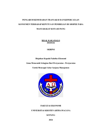 BALO, Risal Kaka (2024) PENGARUH KEMUDAHAN TRANSAKSI DAN KEPERCAYAAN KONSUMEN TERHADAP KEPUTUSAN PEMBELIAN DI SHOPEE PADA MASYARAKAT KOTA KUPANG. Undergraduate thesis, Artha Wacana Christian University.