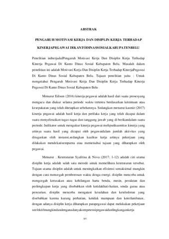 MALI, Yunita Sose (2024) PENGARUH MOTIVASI KERJA DAN DISIPLIN KERJA TERHADAP KINERJA PEGAWAI PADA KANTOR DINAS SOSIAL KABUPATEN BELU. Undergraduate thesis, Artha Wacana Christian University.