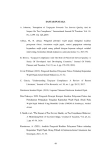 | Uncontrolled Keywords: | Kualitas pelayanan fiskus, kepatuhan wajib pajak |