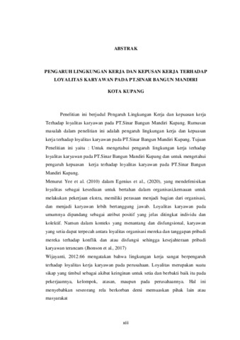BANI, Juwita Doku (2024) PENGARUH LINGKUNGAN KERJA DAN KEPUASAN KERJA TERHADAP LOYALITAS KARYAWAN PADA PT. SINAR BANGUN MANDIRI KOTA KUPANG. Undergraduate thesis, Artha Wacana Christian University.