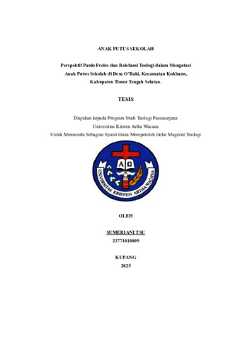 TSU, Sumeriani (2025) ANAK PUTUS SEKOLAH: Perspektif Paulo Freire dan Relefansi Teologi dalam Mengatasi Anak Putus Sekolah di Desa O’Baki, Kecamatan Kokbaun, Kabupaten Timor Tengah Selatan. Masters thesis, Artha Wacana Christian University.