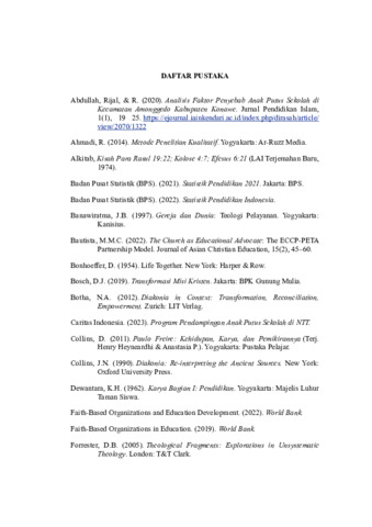 Penelitian ini mengkaji fenomena anak putus sekolah di Desa O’Baki, Kabupaten Timor Tengah Selatan, melalui perspektif pendidikan Paulo Freire dan teologi transformatif, dengan metode kualitatif yang melibatkan wawancara mendalam terhadap 15 anak putus sekolah, orang tua, guru, dan tokoh gereja, observasi partisipatif, serta analisis dokumen kebijakan dan arsip gereja. Hasil penelitian mengungkap bahwa penyebab utama putus sekolah adalah faktor ekonomi (80% responden mengaku tidak mampu membiayai sekolah), lingkungan sekolah yang tidak memadai (65% mengeluhkan fasilitas belajar buruk), dan persepsi masyarakat yang meremehkan pendidikan formal (50% keluarga menganggap sekolah tidak penting untuk kehidupan bertani). Sebagai solusi, konsep pendidikan pembebasan Freire, yang menekankan dialog dan kesadaran kritis, diusulkan sebagai solusi untuk memberdayakan anak-anak putus sekolah. Selain itu, gereja diharapkan dapat berperan aktif melalui pendekatan teologi transformatif dan program berbasis komunitas. Temuan ini tidak hanya memberikan kontribusi akademis tetapi juga rekomendasi praktis bagi pemerintah, praktisi pendidikan, dan gereja dalam mengatasi masalah putus sekolah di daerah marginal.