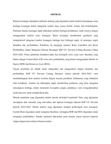 ANALISIS RASIO LIKUIDITAS DAN RASIO PROFITABILITAS DALAM MENGUKUR KINERJA KEUANGAN KOPERASI SIMPAN PINJAM CU SERVIAM CABANG BAUMATA TAHUN 2019-2023
