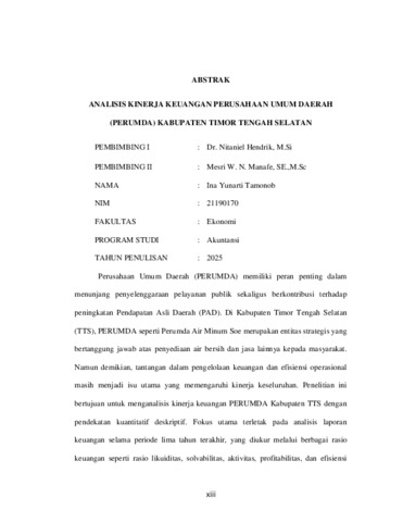 TAMONOB, Ina Yunarti (2025) ANALISIS KINERJA KEUANGAN PERUSAHAAN UMUM DAERAH (PERUMDA) KABUPATEN TIMOR TENGAH SELATAN. Undergraduate thesis, Artha Wacana Christian University.