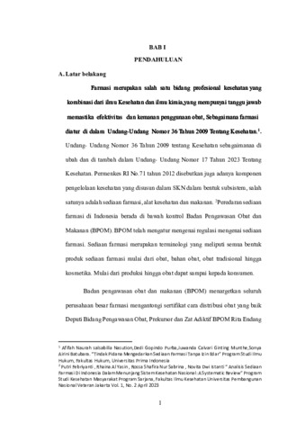 | Uncontrolled Keywords: | Pengedaraan Sediaan Farmasi, Akibat Hukum |