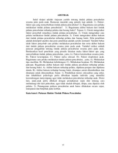 Rumusan masalah yang penulis kaji adalah: 1). Faktor faktor apa yang menyebabkan tindak pidana pencabulan? 2). Bagaimana cara pelaku melakukan tindak pidana pencabulan?. 3). Bagaimana akibat hukum dari tindak pidana pencabulan terhadap pelaku dan barang bukti?. Tujuan 1). Untuk mengetahui faktor penyebab terjadinya tindak pidana pencabulan. 2). Untuk mengetahui cara pelaku melakukan tindak pidana pencabulan. 3). Untuk mengetahui akibat hukum dari tindak pidana pencabulan terhadap pelaku dan barang bukti. Sifat penelitian adalah deskriptif-analitis dan jenis penelitian adalah yuridis normatif. Variabel bebas ialah faktor penyebab cara pelaku melakukan pencabulan dan serta akibat hukum dari tindak pidana pencabulan sesama jenis pada anak. Variabel terikat adalah putusan pengadilan tentang tindak pidana pencabulan sesama jenis pada anak. Berdasarkan hasil penelitian yang penulis lakukan maka faktor-faktor apa yang menyebabkan tindak pidana pencabulan, yaitu; A). Faktor ketertarikan sesama jenis. B). Faktor kesempatan. C). Faktor nafsu seksual. D). Faktor eksploitasi anak. Bagaimana cara pelaku melakukan tindak pidana pencabulan, yaitu; A). Melakukan tipu muslihat. B). Melakukan kebohongan. C). Melakukan bujukan. D). Melakukan paksaan. Bagaimana akibat hukum dari tindak pidana pecabulan terhadap pelaku dan barang bukti. A). Akibat hukum terhadap pelaku, dipidana penjara dan dipidana denda. B). Akibat hukum terhadap barang bukti, dirampas untuk dikembalikan dan dirampas untuk dimusnahkan. Saran: 1). Pendidikan moral, seksualitas yang sehat, dan rehabilitasi psikologis perlu diberikan kepada individu yang memiliki kecendrungan menyimpang agar tidak melakukan pencabulan terhadap anak. Disisi lain, anak-anak perlu dibekali dengan pemahaman sejak dini tentang cara melindungi diri dari pelecehan, agar tidak mudah dibujuk, ditipu, atau dipaksa oleh pelaku. 2). Penanganan perkara pencabulan anak harus dilakukan secara cepat, transparan dan berpihak pada korban.
