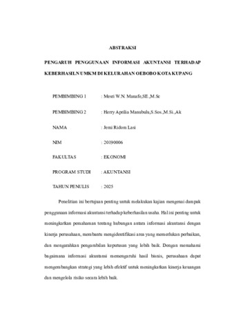 LASI, Jemi Ridom (2025) PENGARUH PENGGUNAAN INFORMASI AKUNTANSI TERHADAP KEBERHASILAN UMKM DI KELURAHAN OEBOBO KOTA KUPANG. Undergraduate thesis, Artha Wacana Christian University.