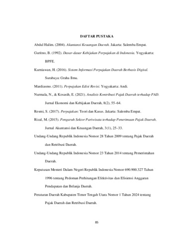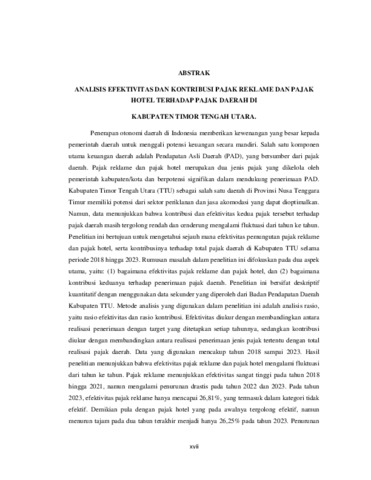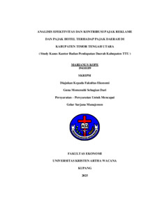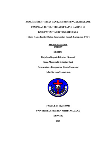 KOPE, Marianus (2025) ANALISIS EFEKTIVITAS DAN KONTRIBUSI PAJAK REKLAME DAN PAJAK HOTEL TERHADAP PAJAK DAERAH DI KABUPATEN TIMOR TENGAH UTARA: (Study Kasus Kantor Badan Pendapatan Daerah Kabupaten TTU). Undergraduate thesis, Artha Wacana Christian University.