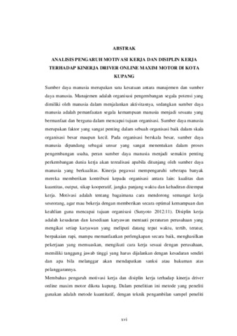 HOLI, Marlince Rara (2025) ANALISIS PENGARUH MOTIVASI KERJA DAN DISIPLIN KERJA TERHADAP KINERJA DRIVER ONLINE MAXIM MOTOR DI KOTA KUPANG. Undergraduate thesis, Artha Wacana Christian University.