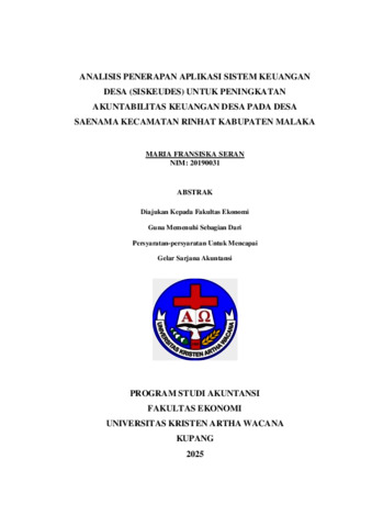 SERAN, Maria Fransiska (2025) ANALISIS PENERAPAN APLIKASI SISTEM KEUANGAN DESA (SISKEUDES) UNTUK PENINGKATAN AKUNTABILITAS KEUANGAN DESA PADA DESA SAENAMA KECAMATAN RINHAT KABUPATEN MALAKA. Undergraduate thesis, Artha Wacana Christian University.