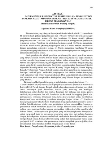 | Uncontrolled Keywords: | Penyelesaian, Restorative justice, Penganiayaan |